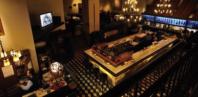 The world is at the bar counter